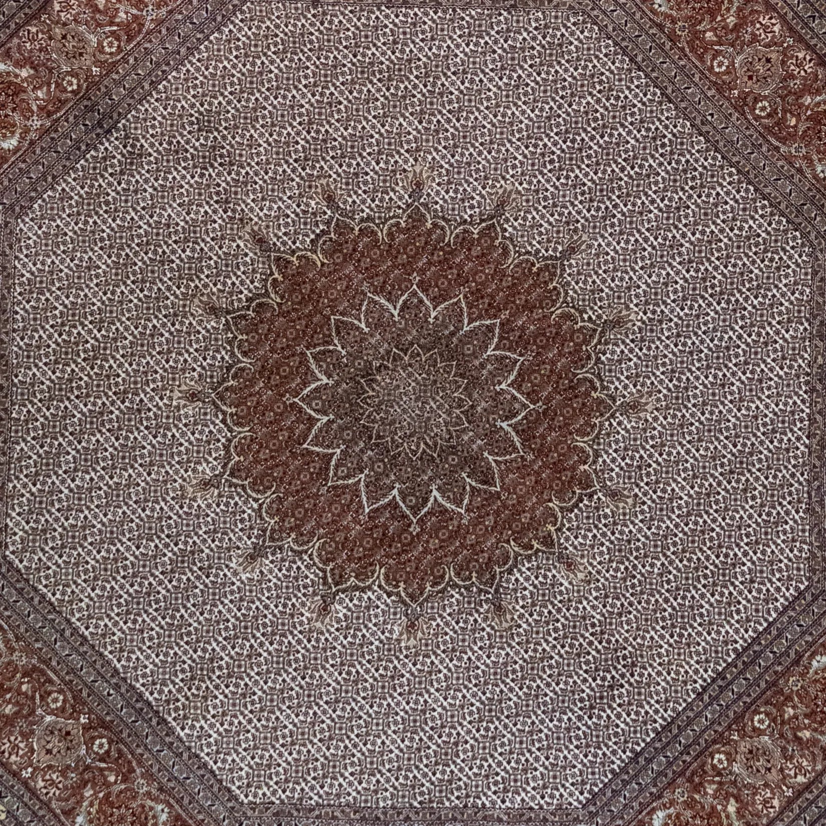Elevate Your Space with Timeless FISH DESIGN. This elegant TABRIZ rug, featuring the distinctive fish design, brings a touch of heritage and artistry to your home. The intricate patterns on the BEIGE background symbolize movement and harmony, making it a perfect centerpiece for any room. The ROSE border adds a sophisticated contrast, framing the detailed design beautifully. Whether displayed in your living room, study, or any formal space, this rug enhances the ambiance with its rich cultural significance. Handcrafted in PERSIAN, this rug is not only a stylish addition but also a lasting investment in quality and tradition. Measuring 6' 7" x 6' 7" (imperial) or 200 x 200 (metric), it offers durability and elegance that will elevate your space for years to come.