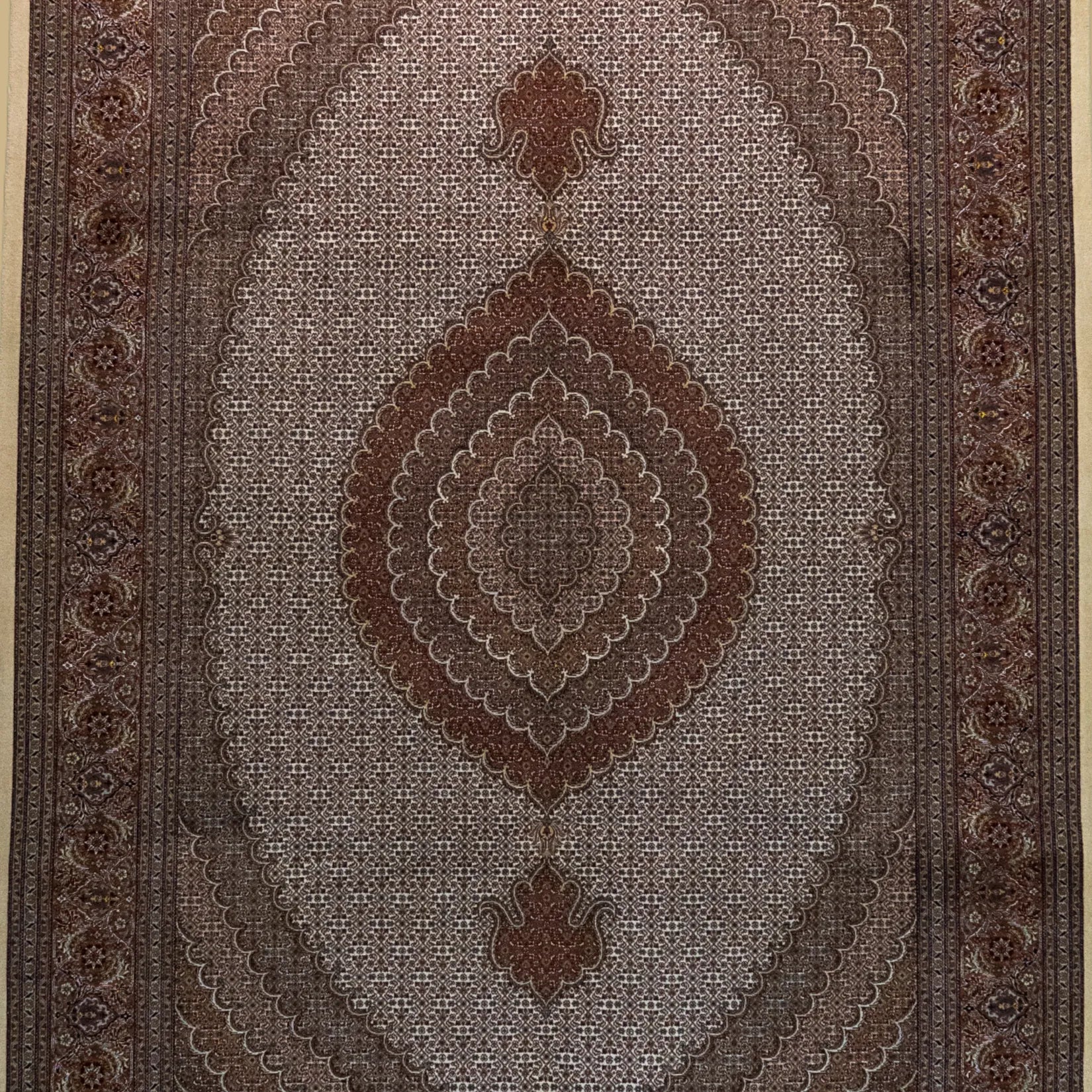 Elevate Your Space with Timeless FISH DESIGN. This elegant TABRIZ rug, featuring the distinctive fish design, brings a touch of heritage and artistry to your home. The intricate patterns on the BEIGE background symbolize movement and harmony, making it a perfect centerpiece for any room. The ROSE border adds a sophisticated contrast, framing the detailed design beautifully. Whether displayed in your living room, study, or any formal space, this rug enhances the ambiance with its rich cultural significance. Handcrafted in PERSIAN, this rug is not only a stylish addition but also a lasting investment in quality and tradition. Measuring 6' 7" x 9' 10" (imperial) or 200 x 300 (metric), it offers durability and elegance that will elevate your space for years to come.