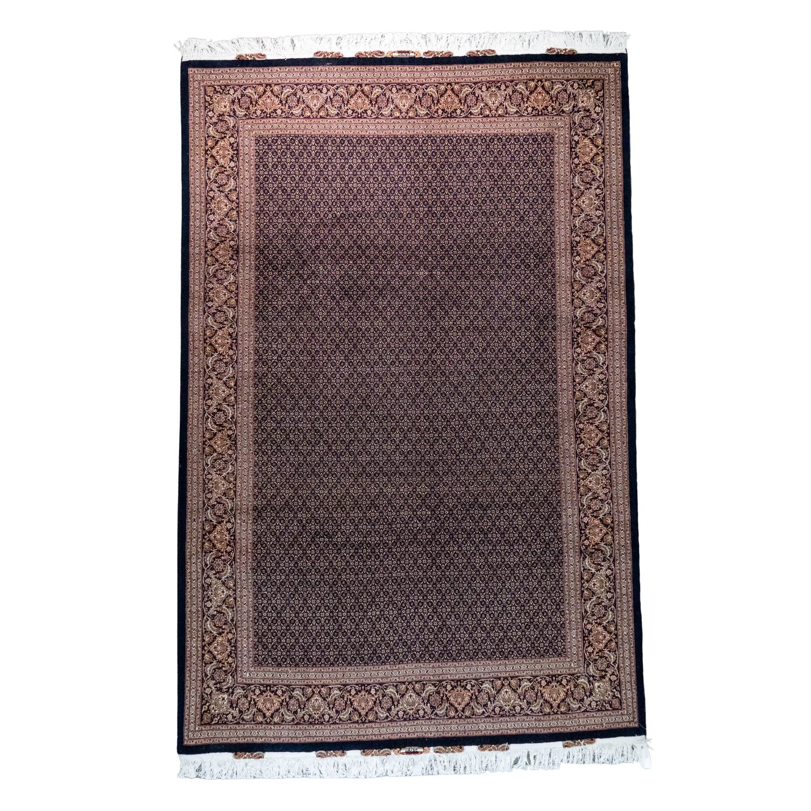 Elevate Your Space with Timeless FISH DESIGN. This elegant TABRIZ rug, featuring the distinctive fish design, brings a touch of heritage and artistry to your home. The intricate patterns on the NAVY background symbolize movement and harmony, making it a perfect centerpiece for any room. The NAVY border adds a sophisticated contrast, framing the detailed design beautifully. Whether displayed in your living room, study, or any formal space, this rug enhances the ambiance with its rich cultural significance. Handcrafted in PERSIAN, this rug is not only a stylish addition but also a lasting investment in quality and tradition. Measuring 6' 8" x 10' 2" (imperial) or 203 x 310 (metric), it offers durability and elegance that will elevate your space for years to come.