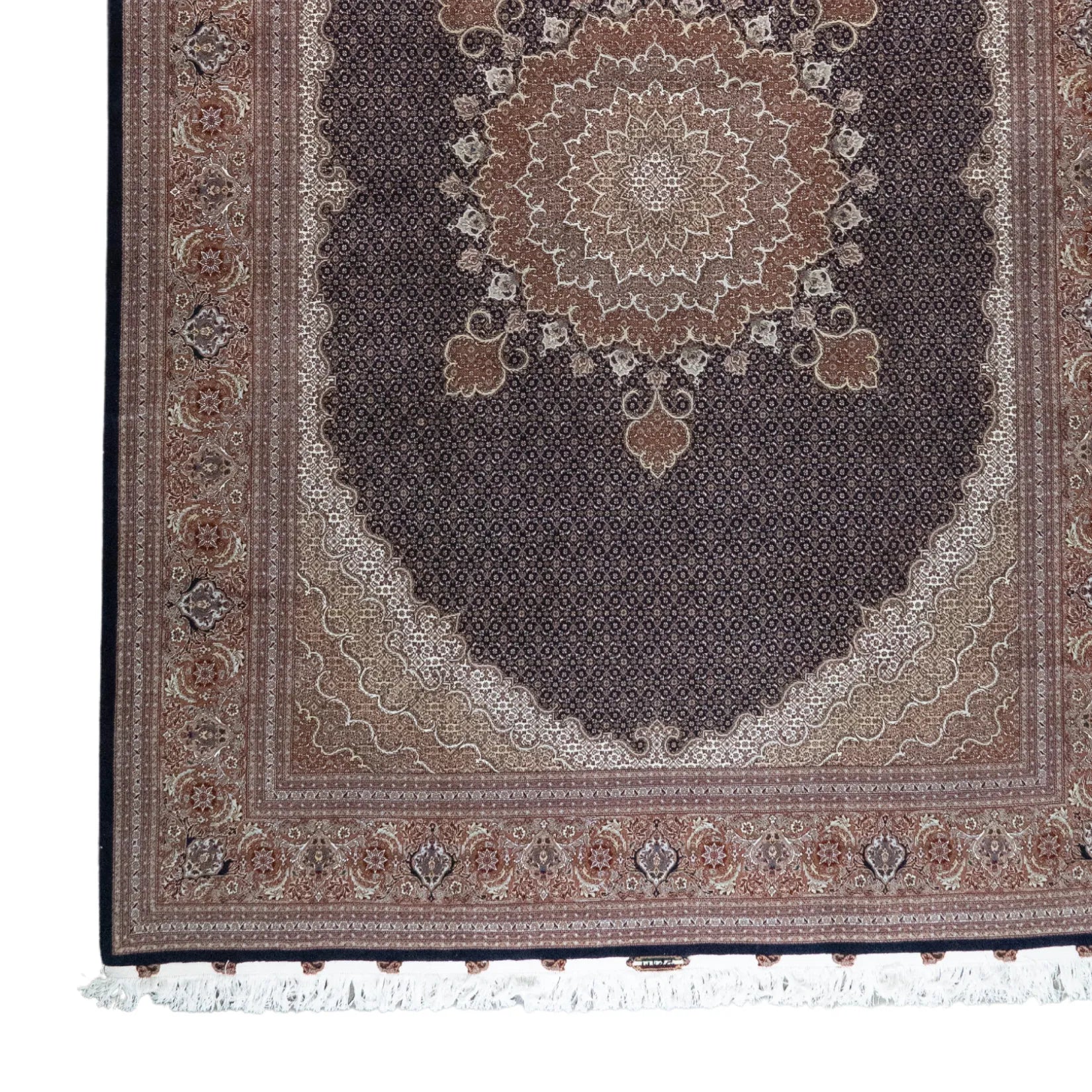 Elevate Your Space with Timeless FISH DESIGN. This elegant TABRIZ rug, featuring the distinctive fish design, brings a touch of heritage and artistry to your home. The intricate patterns on the NAVY background symbolize movement and harmony, making it a perfect centerpiece for any room. The ROSE border adds a sophisticated contrast, framing the detailed design beautifully. Whether displayed in your living room, study, or any formal space, this rug enhances the ambiance with its rich cultural significance. Handcrafted in PERSIAN, this rug is not only a stylish addition but also a lasting investment in quality and tradition. Measuring 8' 4" x 11' 4" (imperial) or 254 x 345 (metric), it offers durability and elegance that will elevate your space for years to come.