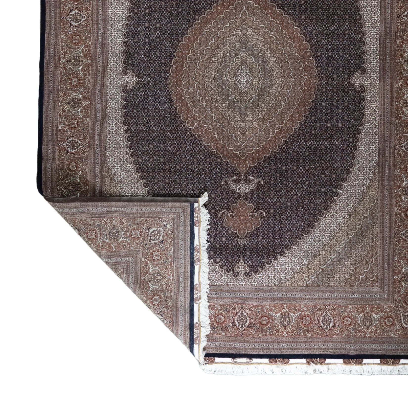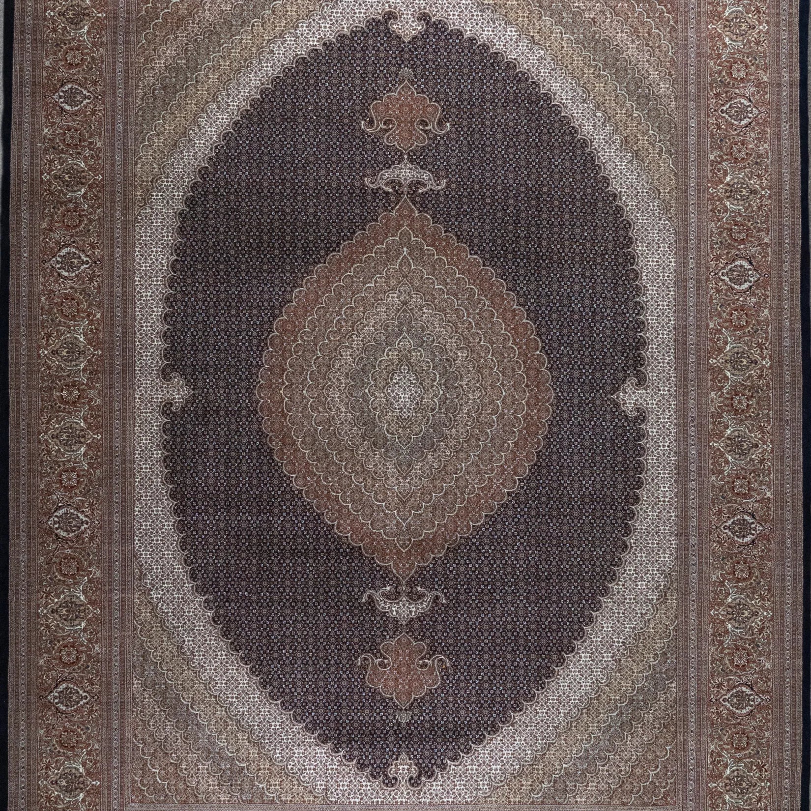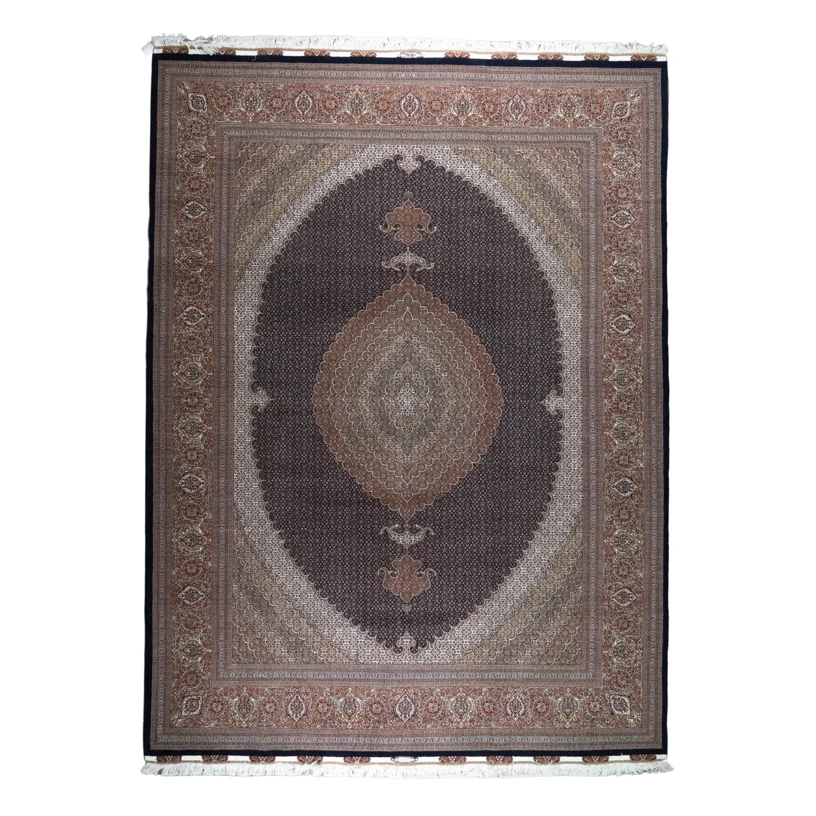 Elevate Your Space with Timeless FISH DESIGN. This elegant TABRIZ rug, featuring the distinctive fish design, brings a touch of heritage and artistry to your home. The intricate patterns on the NAVY background symbolize movement and harmony, making it a perfect centerpiece for any room. The ROSE border adds a sophisticated contrast, framing the detailed design beautifully. Whether displayed in your living room, study, or any formal space, this rug enhances the ambiance with its rich cultural significance. Handcrafted in PERSIAN, this rug is not only a stylish addition but also a lasting investment in quality and tradition. Measuring 9' 10" x 13' 2" (imperial) or 300 x 401 (metric), it offers durability and elegance that will elevate your space for years to come.