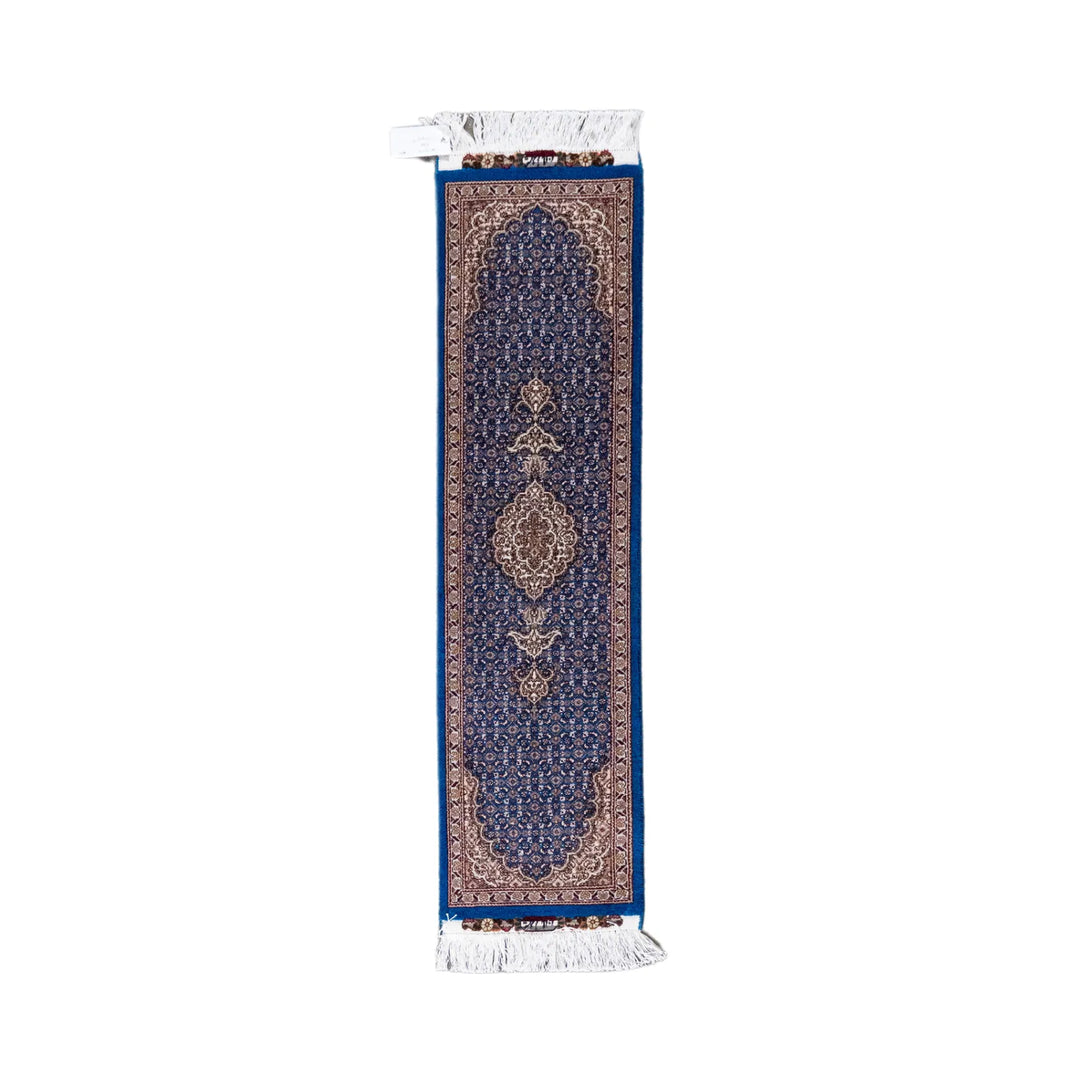1' 2" x 4' 7" - NAVY AND BEIGE TABRIZ FISH DESIGN PERSIAN RUG ( 35 x 140 CM )