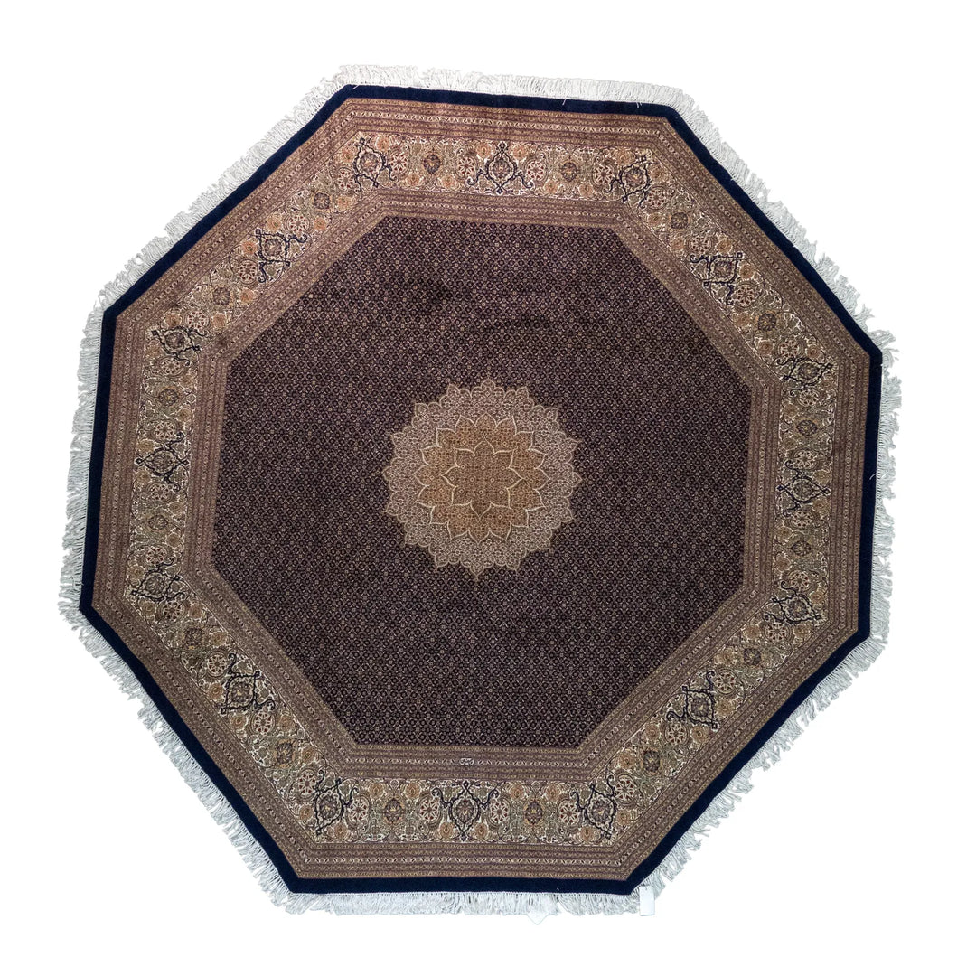 7' 1" x 7' 1" - NAVY AND NAVY TABRIZ FISH DESIGN PERSIAN RUG ( 216 x 216 CM )