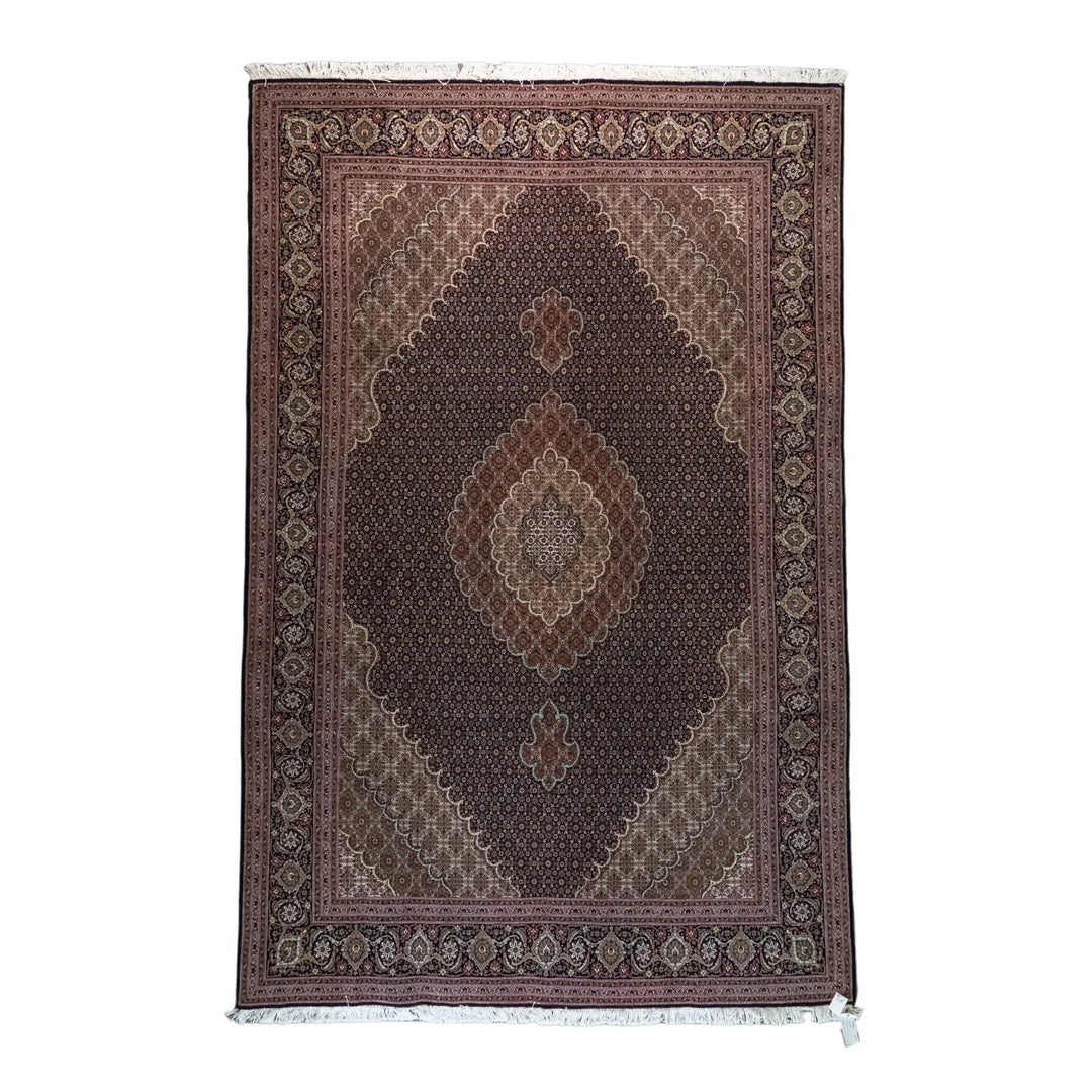 6' 9" x 10' 0" - BLACK AND ROSE TABRIZ FISH DESIGN PERSIAN RUG ( 206 x 305 CM )