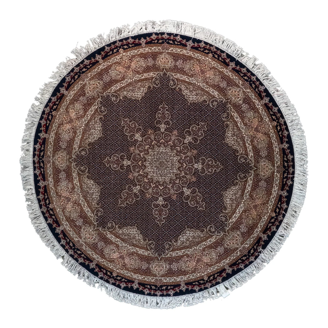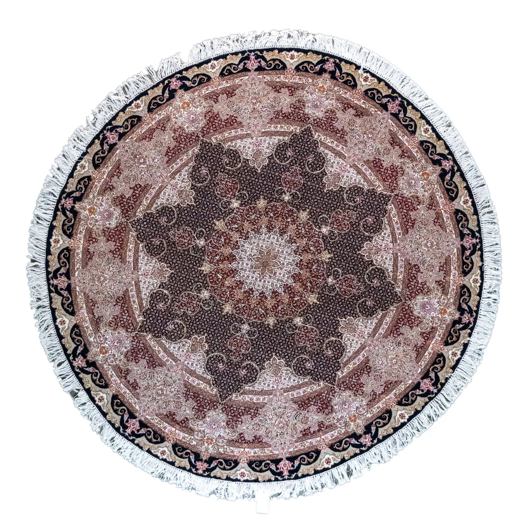 4' 11" x 4' 11" - NAVY AND ROSE TABRIZ FISH DESIGN PERSIAN RUG ( 150 x 150 CM )