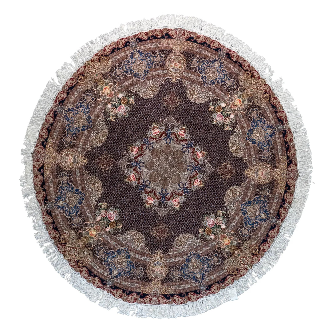 6' 7" x 6' 7" - NAVY AND ROSE TABRIZ FISH DESIGN PERSIAN RUG ( 200 x 200 CM )