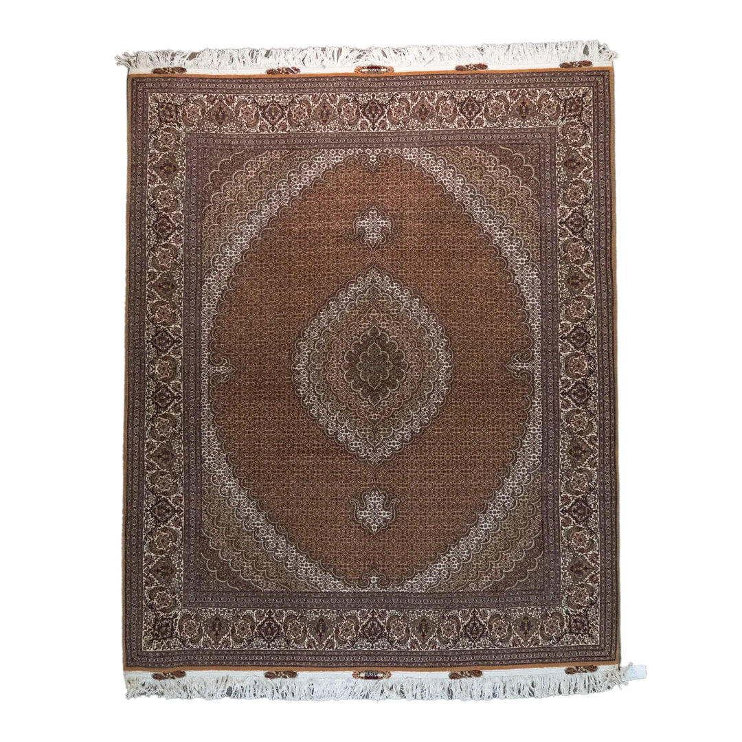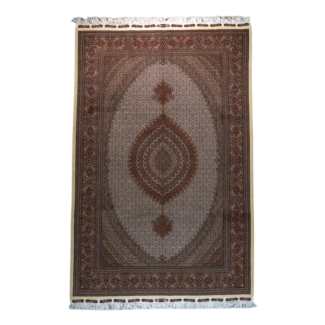 6' 7" x 9' 10" - BEIGE AND ROSE TABRIZ FISH DESIGN PERSIAN RUG ( 200 x 300 CM )