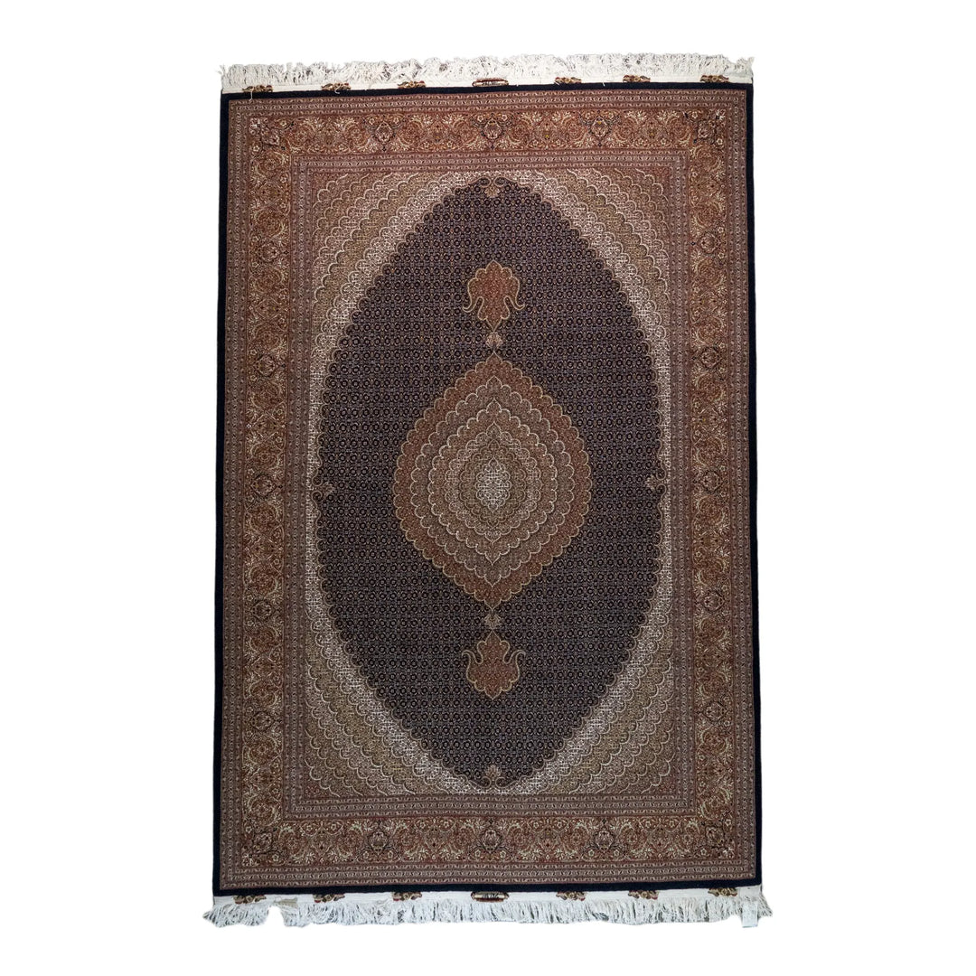 6' 9" x 9' 9" - BLACK AND NAVY TABRIZ FISH DESIGN PERSIAN RUG ( 206 x 297 CM )