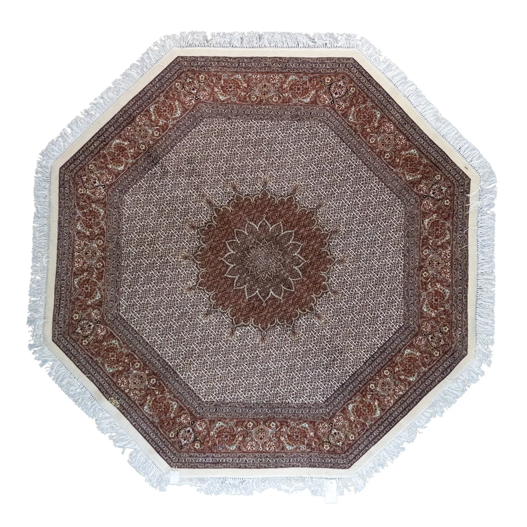 6' 7" x 6' 7" - BEIGE AND ROSE TABRIZ FISH DESIGN PERSIAN RUG ( 200 x 200 CM )